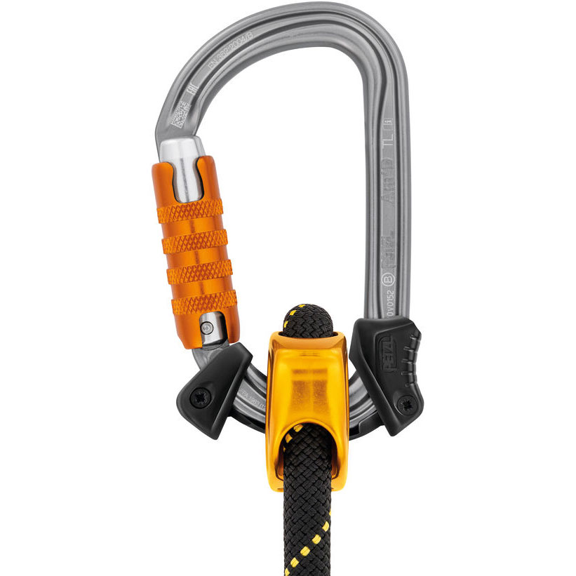 ポジショニングパーツ『キャプティブ アジャスト』により、荷重がカラビナの縦軸方向にかかるようにサポートし、ロープクランプ『アジャスト』を正しい位置に維持できるため、不意にロックが解除されるリスクが抑えられます。