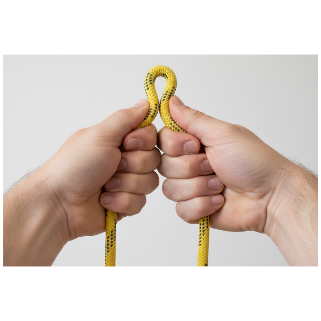 ロープの最大破断強度は、まっすぐ引っ張った理想状態で測定された数値です。