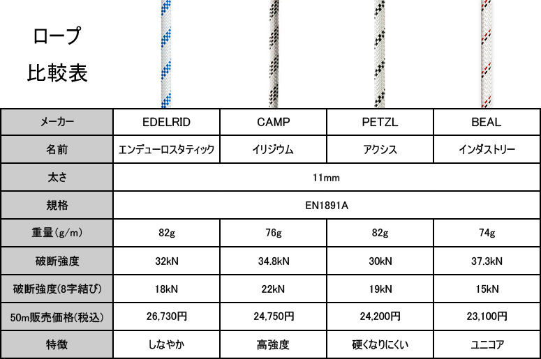 EN1891A規格・11mmセミスタティックロープ4モデルを、